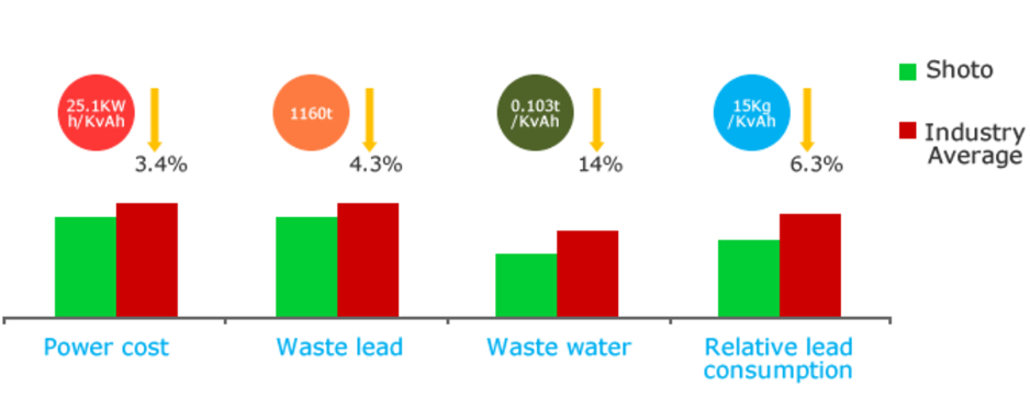 SHOTO construyó la primera cadena de reciclaje de baterías de plomo de la industria en China. La empresa metalúrgica filial de SHOTO, Rugao Tianpeng, procesa 100 000 toneladas de residuos procedentes de baterías de plomo-ácido y 60 000 toneladas procedentes de la regeneración de plomo refinado cada año. Promovemos el reciclaje y la reutilización.